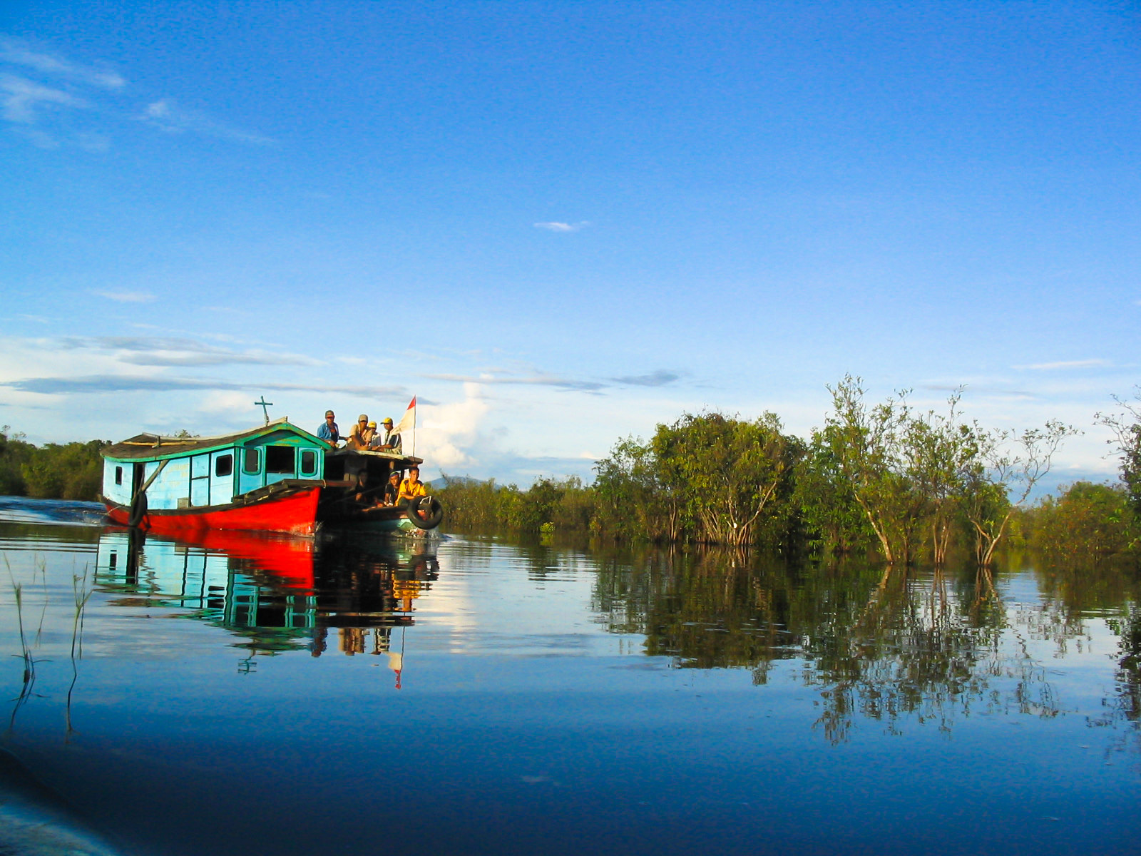 Casa bote en el lago Sentarum, Kalimantan, Indonesia.
