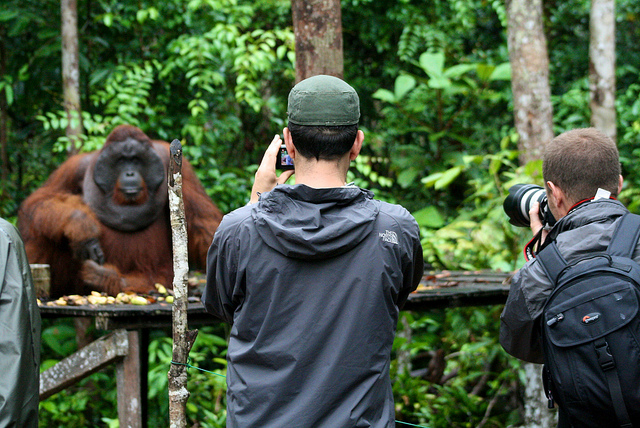 Russon said that financial incentives precipitated by tourism may also encourage bad practices such as overcrowding and inappropriate behavior to satisfy tourists’ curiosity, like touching and feeding the primates. Regulations already in place to control these bad practices, such as banning eating or offering orangutans food, and avoiding contact with orangutans, have proven very difficult to control. More stringent regulations are now recommended by the IUCN, however, such as limiting groups of tourists to no more than four people at a time, limiting visits to one hour a day, requiring all visitors to wear surgical quality masks while visiting orangutans, and keeping a distance of at least 10 meters from orangutans.