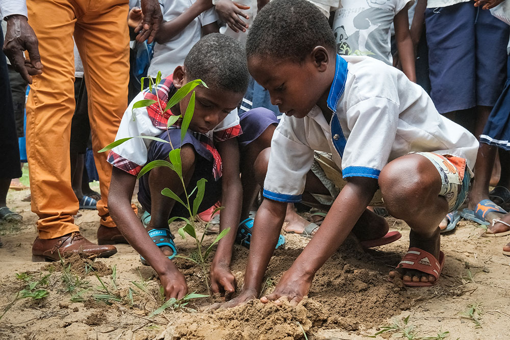 Two schools had rainwater harvesting systems installed to guarantee access to water, facilitate the watering of seedlings, and contribute to sanitation. Eight schools established new agroforestry fields, and almost 1,000 fruit trees and around 250 acacia seedlings were transplanted from nurseries to school orchards and agroforestry fields.