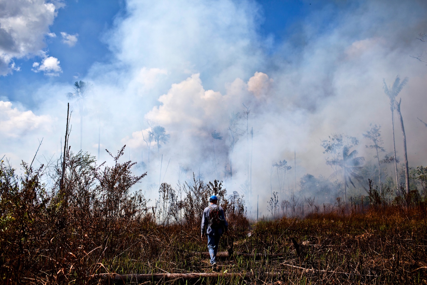 LIMA, Perú . Víctor Gutiérrez divisa una columna espesa de humo elevándose desde un campo lleno de maleza en las afueras de la ciudad de Pucallpa, en la región amazónica de Perú, detiene su camioneta, se baja y camina sobre los mogotes carbonizados hacia el fuego.