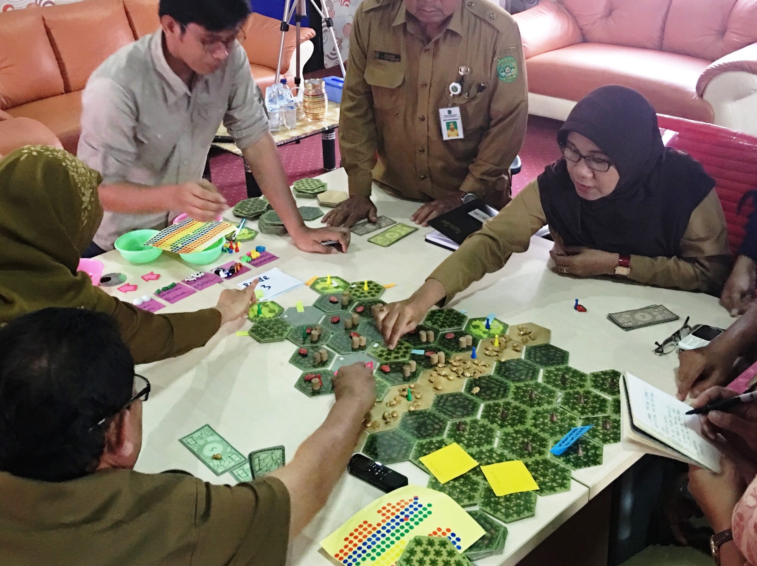 Un grupo de agricultores del distrito rural de Kutai Kartanegara, en la provincia indonesia de Kalimantan Oriental, se ha reunido alrededor de lo que parece ser un juego de mesa común: hay fichas, tarjetas, dinero de juguete; las habituales piezas de juego. Pero los agricultores no solo están aquí para divertirse. Su objetivo principal es abordar un problema importante que afecta al medio ambiente y sus medios de vida: el tema de la palma aceitera.